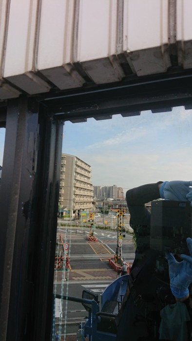 本日は、八尾の施設で高所作業車を使いガラス清掃を実施してきました。